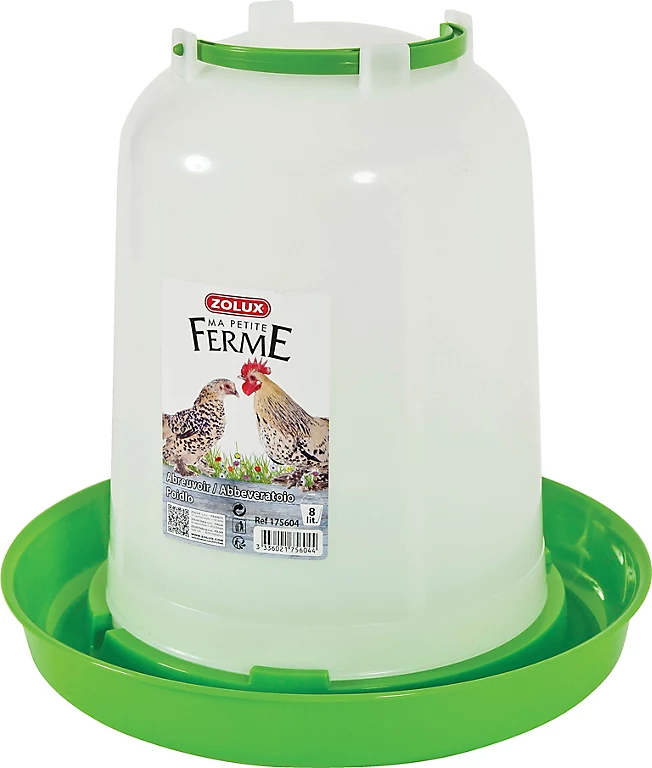 Abreuvoir en plastique de qualité pouvant contenir jusqu’à 8 L. Le réservoir est translucide afin de pouvoir contrôler le niveau d’eau restant. Une poignée de transport est également intégrée.