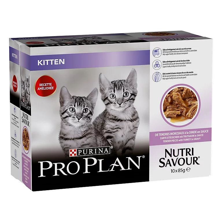 Aliment pour chat junior Pro Plan KITTEN en sauce à la dinde 10 x 85g