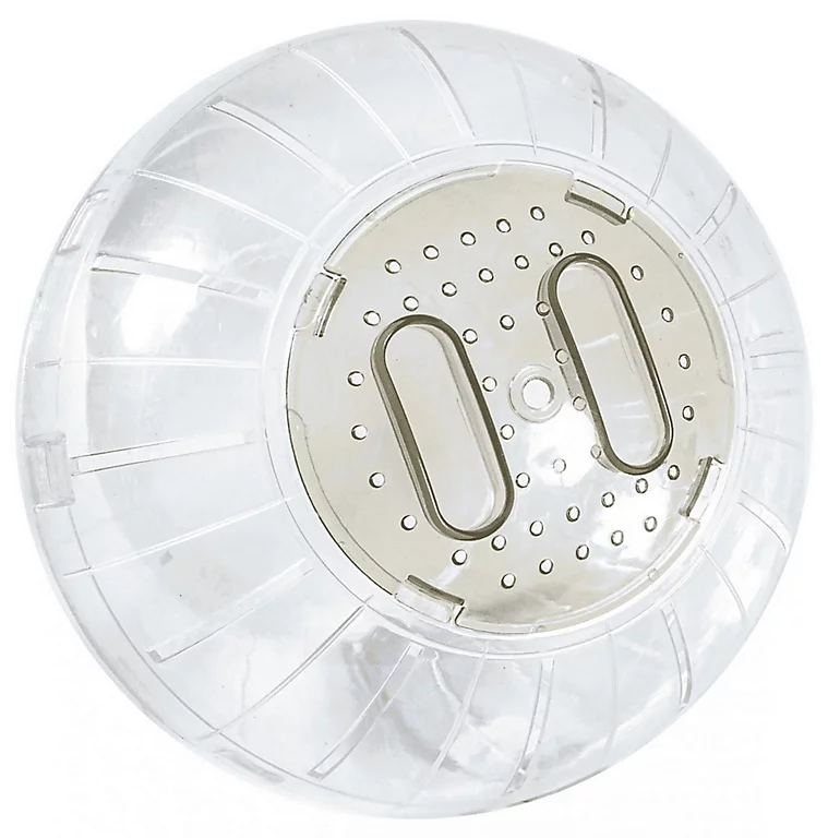 Boule d’exercice en plastique transparent pour petits mammifères. Le diamètre de la boule est désormais de 18 cm (et non plus de 12,5 cm comme c’était le cas sur le modèle précédent). Disponible en 2 coloris : beige et gris.