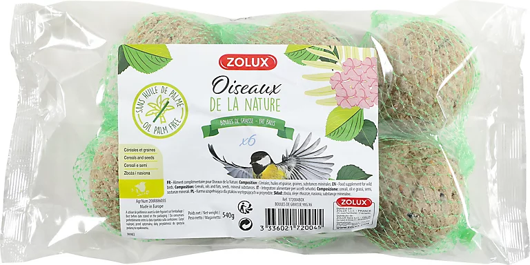 Ces boules offrent aux oiseaux l’apport énergétique dont ils ont besoin, surtout en hiver. Livrées dans un seau pour une meilleure conservation.