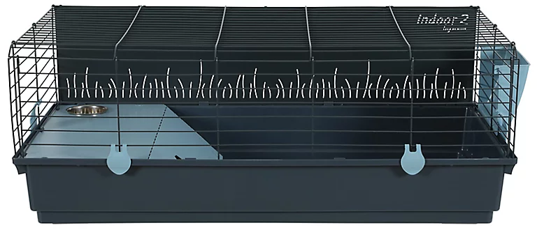 Nouvelle cage pour grands rongeurs au coloris bleu pastel avec une finition mate pour les parties en métal de la cage. Elle s’intègrera facilement dans les intérieurs actuels. Une paroi en métal plein avec découpes d’herbe et logo Indoor 2 a été prévue pour éviter les projections contre les murs. De plus, la paroi permet de mieux voir l’animal se déplacer dans son habitat. La cage comporte un ratelier à foin, une niche en métal ainsi qu’une écuelle en inox.
