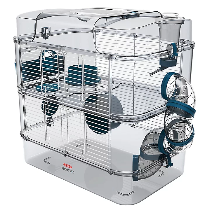 Cet habitat évolutif pour petits rongeurs sur deux niveaux, offre tous les équipements nécessaires (1 roue, 5 tubes coudés, 1 biberon, 1 gamelle, 1 nid extérieur, 2 bouchons) !