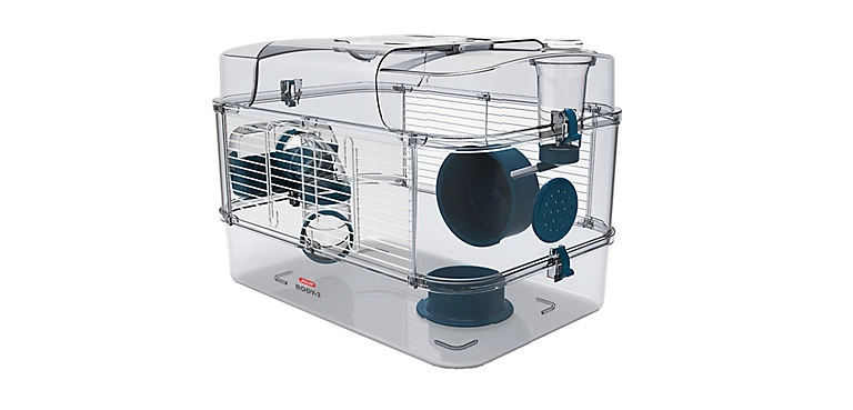 Cet habitat évolutif pour petits rongeurs sur un niveau offre tous les équipements nécessaires (1 roue, 2 tubes coudés, 1 biberon, 1 gamelle, 1 nid extérieur, 1 bouchon) !