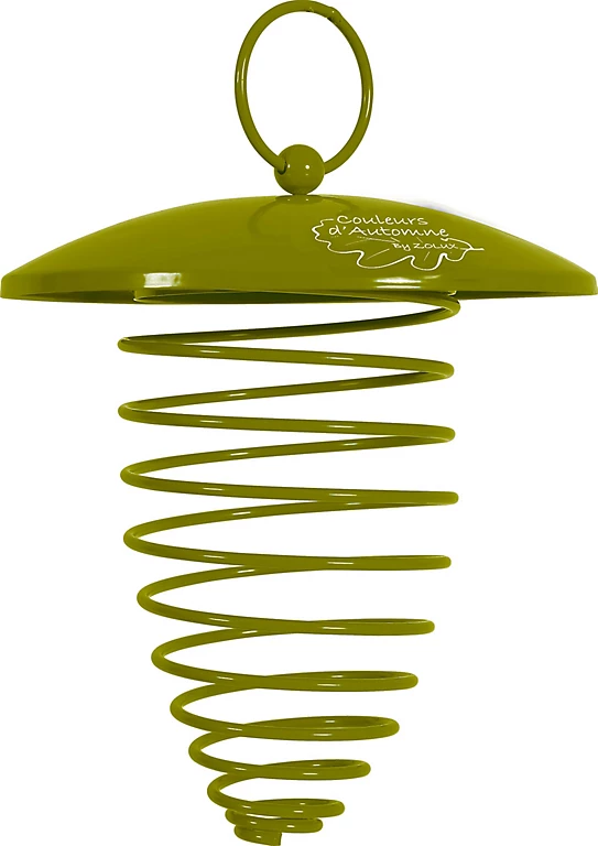Fabriqué en métal pour une meilleure résistance, ce distributeur en spirale, original et design, peut accueillir jusqu’à 2 boules de graisse, de quoi ravir nos amis les oiseaux ! Muni d’un anneau, il peut être suspendu facilement dans votre jardin et se déplace au gré de vos envies. Le toit permet de garder les graines à l’abri des intempéries. Disponible en 4 coloris : vert, rouge, orange et gris ardoise. 100% métal.