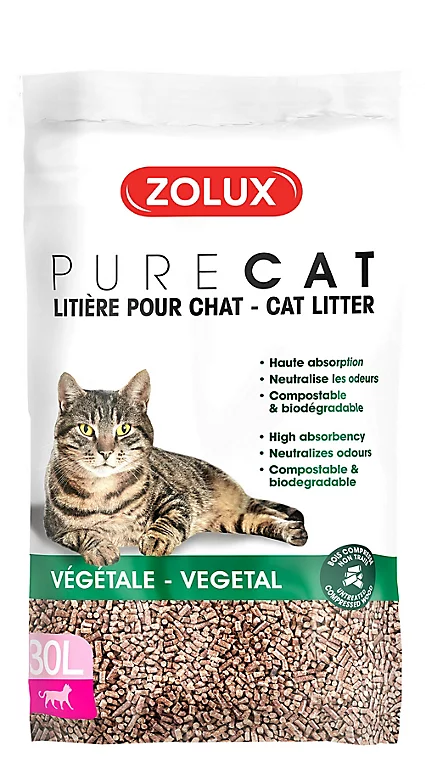 Nouveau format 30L – Litière végétale naturelle, fabriquée à base de sciure de bois compressée non traitée. Les bouchons naturellement absorbants offrent une haute capacité d’absorption et un grand confort d’utilisation pour le chat. Hygiénique, cette litière est non poussiéreuse et ne colle pas aux pattes. Respectueuse de l’environnement, elle est biodégradable et peut être incinérée ou compostée. La litière végétale Purecat ne contient pas de pesticides ni de produits de traitement. Elle convient à tous les chats. Son taux d’absorption est de 250%.