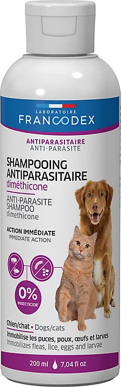 | Mode d'emploi | Agiter avant emploi. Appliquer sur l’animal préalablement mouillé et masser pour bien répartir le produit. Laisser agir quelques minutes, puis rincer abondamment. |